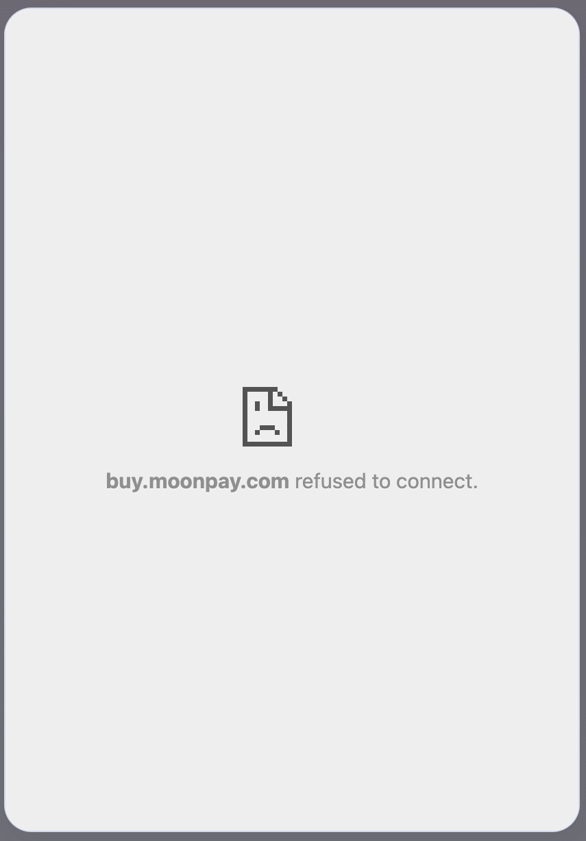 If you see a CSP error that says buy.moonpay.com refused to connect, you’ll need to allowlist your production domain(s). We require this when you embed the MoonPay widget in an iframe or use the overlay, drawer, or embedded options to prevent unauthorized third-parties from embedding the MoonPay widget.